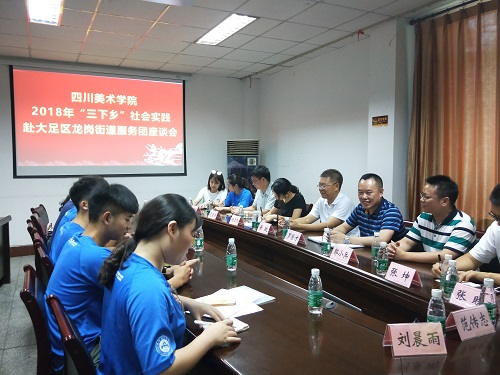 在公共艺术学院“教育关爱服务团”大足区龙岗街道实践点,黄政冒着酷暑调研川美学生“三下乡”社会实践工作。大足区副区长周虹等陪同调研。黄政先到龙岗街道学坝社区慰问了在此开展暑期“三下乡“社会实践活动的全体师生。随后在龙岗街道办事处召开了座谈会。志愿者们畅谈了本次活动的心得,一致认为这次活动十分有意义,能将自己的专业知识运用到实践中去,以此回报社会。黄政代表学校感谢龙岗街道在此次活动中对人才培养的支持,表示学校将与大足区持续深入地开展战略合作,为大足的建设发展作出贡献。龙岗街道办事处党工委书记罗登才和团区委副书记任春燕先后发言,表示希望加强校地合作,搭建新平台,开展新局面。黄政代表学校向龙岗街道学坝街社区授牌“