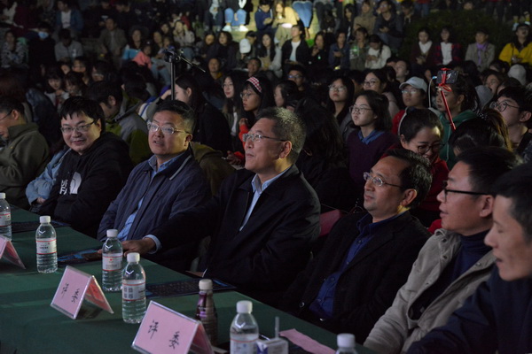 11月2日晚7点,由共青团 委员会主办,校学生会、大学生艺术团、社团联合会承办的“青春瞩目十九大,不忘初心跟党走的”系列活动——“心-生”2017年迎新晚会在虎溪校区断桥广场热烈举行。学校党委书记黄政,党委副书记左益,党委常委、副校长彭林权出席晚会,各职能部门、院系师生共计3000余人观看晚会。