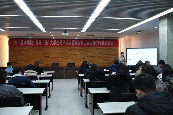 2018年1月12日下午,我校“青马工程”大学生骨干培训暨校级学生组织2017年度述职大会在五会议室召开。校团委负责人参加会议,校学生会、社团联合会、大学生艺术团的全体主席、团长、部长及各部门的骨干成员参加,会议由校团委副书记张坤主持。