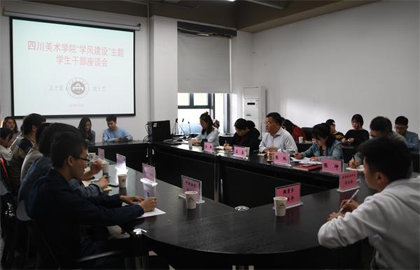 为加强学校学风建设,促进学生干部成长成才,4月3日下午3点,学校在三会议室组织召开“学风建设”主题学生干部座谈会。党委副书记左益出席会议,学生处、团委负责人,团委相关指导老师,校学生会、校大学生艺术团、校社团联合会主席及各部部长,中国画系等虎溪校区11个院系的学生会主席约40人参会。会议由团委书记吴倩主持。
