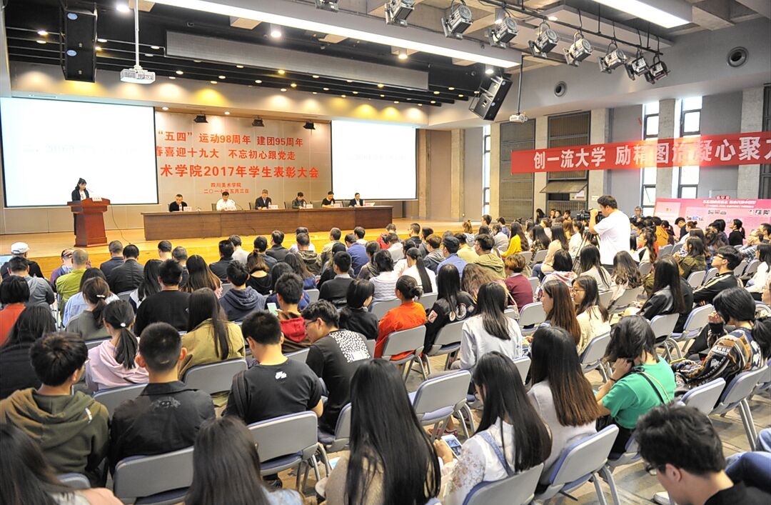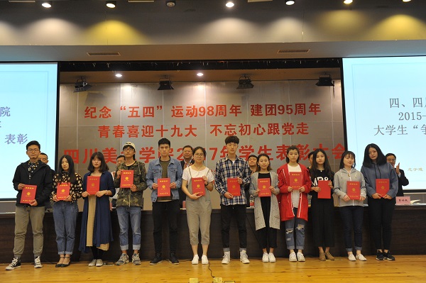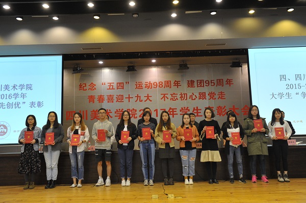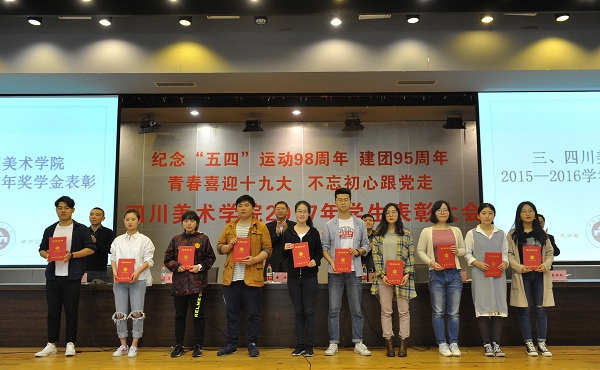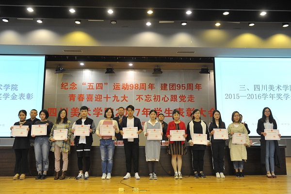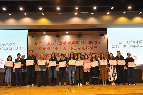 最后,党委书记黄政作重要讲话,他首先代表学校党委向受到表彰的先进个人、集体表示热烈祝贺!向全体青年团员致以节日的问候,向长期以来关心青年成长、致力于青年事业的同志们表示衷心的感谢!他讲到,今年学校持续深入开展“质量建设年“工作,本科教学评估迎评促建、申博工作进入攻坚阶段,在建设“双一流”的时代背景下,全校师生上下齐心,拧成一股绳,正是创一流大学,励精图治凝心聚力;建一流学科,青云之志赤子之心。他讲到,最近教育部部长陈宝生同志、市委副书记唐良志同志先后到美院考察调研,他们对我校坚持以人民为中心的创作导向;我校“生态重建、乡土再造、地方记忆”的建设做法;以主题创作为抓手,加强和改进新形势下思想政治教育工作;我校高等艺术院校创新创业教育特色化发展思路都给予了高度的肯定和赞赏。黄书记用四句诗词向全校青年学生、团员青年殷切寄语,1、三更灯火五更鸡,正是少年读书时。同学们正处于人生美好的时光,正处于川美美丽的校园。学习知识、充实自我毋庸置疑是第一要务。 “花有重开日,人无再少年”,切莫把宝贵时间光阴虚掷。2、千磨万击还坚劲,任尔东西南北风。川美的强大底蕴可以包容各种理想,但是通向理想的路崎岖坎坷,需要我们立足现实,从一张素描作业,一张基础的设计图纸、上好每一堂课开始起步,奠基。3、随人作计终后人,自成一家始逼真。在川美,提倡奇思妙想、提倡“无中生有”,又兼收并蓄、博采众长。文艺创作方法有一百条、一千条,但最根本、最关键、最牢靠的办法是扎根人民、扎根生活。4、苟利国家生死以,岂因祸福避趋之。川美校训是“志于道,游于艺。”我们川美青年应该有国家至上、民族至上、人民至上的情怀,始终胸怀大局、心有大我。黄书记强调,今年是建团95周年,不忘初心跟党走是中国共产主义青年团95年的基本遵循。“不忘历史才能开辟未来,善于继承才能善于创新。”坚守不容易,追求无止境,他鼓励全体青年学生、团员青年更创佳绩,续写光荣。