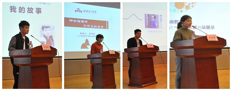 大会上,来自雕塑系的2012级吴笛同学作为全额奖学金、国家奖学金及优秀毕业生代表,设计艺术学院2015级石正萌同学作为优秀学生干部、三好学生代表,手工艺术学院研究生潘宏甲作为创业青年代表,美术教育系2015级吴雪敏作为全国活力团支部班级团支书分别分享了他们在学习、生活、担任学生干部、社会实践、志愿服务方面的成长故事和经历,他们是奋发路上的追梦人,他们的奋斗更是一路征程一路歌,他们的讲述语言平实、却精彩动人。