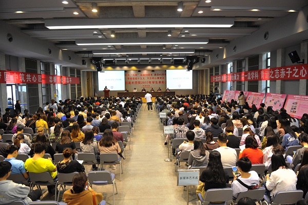 大会在嘹亮的团歌声中结束。会场内,学校还对2016年度学校全额奖学金获得者、研究生(本科)国家奖学金获得者、各院系团总支特色工作进行了风采展示。