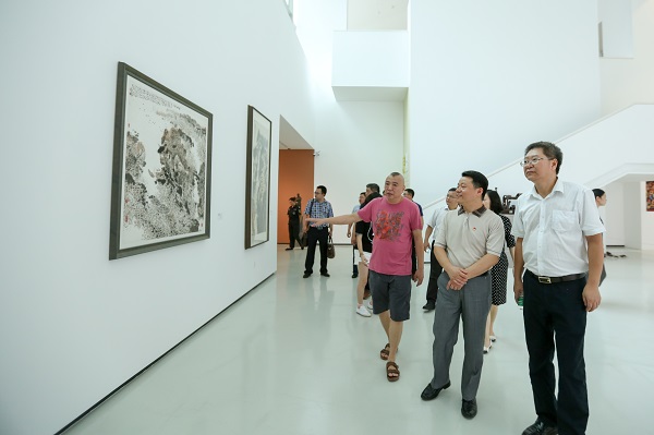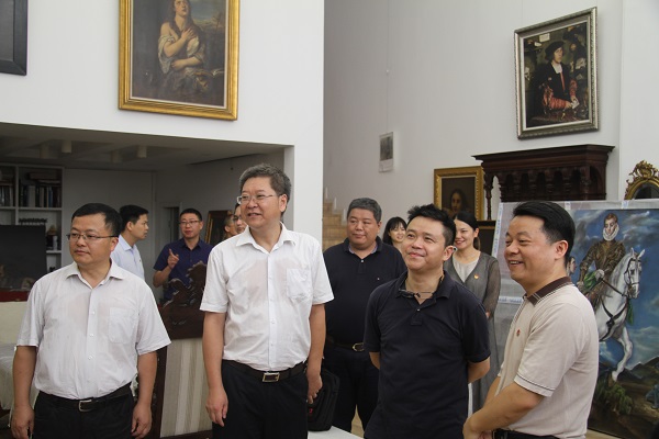 随后,傅振邦一行参观考察了虎溪公社艺术家工作室、 美术馆及其馆藏作品展。在虎溪公社庞茂琨工作室,庞茂琨汇报展示了最新的创作作品,介绍了我校把握社会主义文艺方针、坚持以人民为中心的创作导向、支持和鼓励我校师生开展艺术创作、创作无愧于时代的优秀作品等情况。