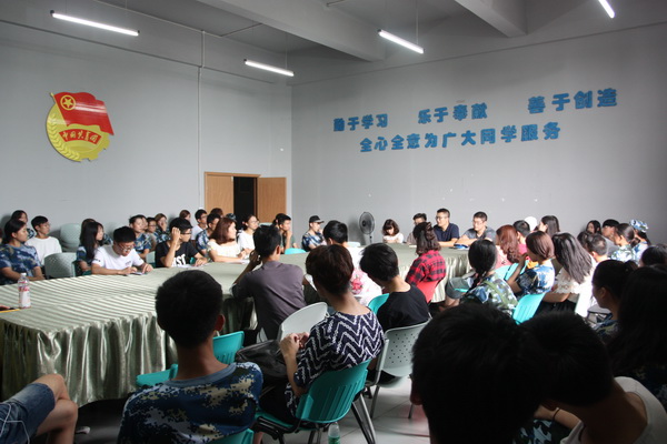 最后,张坤重点传达了学校近期安全稳定工作会议精神,对近期社团活动开展提出了明确要求。介绍在今后社团工作中,将通过以下六个方面,进一步推动学生社团工作,引导学生社团健康发展:一是不断加强对学生社团的领导和管理。严格规范社团活动的报批、报备流程,严格将社团活动限定在校园范围内;二是加强对学生社团的指导。进一步明确社团分类指导,指导老师针对性配备;三是加强学生社团干部队伍建设,严格落实校学生会副主席兼任社团联合会主席制度,社团联合会分管社团工作副主席从优秀社长中产生等措施;四是继续积极支持学生社团开展健康向上的活动,通过社团活动培育与开展,打造精品社团活动品牌;五是加大对学生社团建设的投入,学生活动场所改造方案正在设计实施;六是发挥优秀社团的示范和带动作用。发挥其在学生思想政治教育、维护校园安全稳定等方面的正面积极作用。
