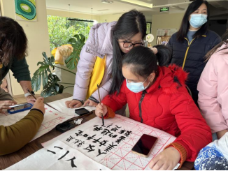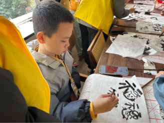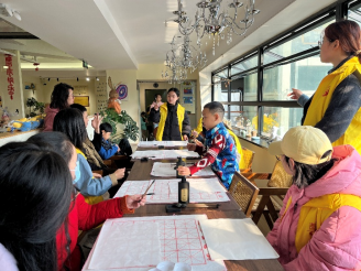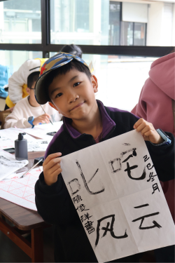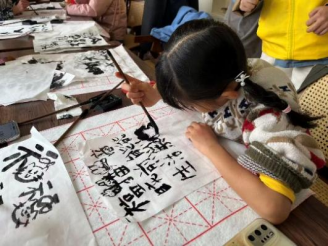 伴随着教学的推进,志愿者鼓励孩子们书写融合“龙年”“马年”等元素的“福”字,孩子们结合内心对“福”的理解与所学技法,将情感凝于笔端。在整个过程中,孩子们逐渐在墨香氤氲中体悟中华文化的魅力,于笔画错落间感受新年将至的雀跃与欢喜。