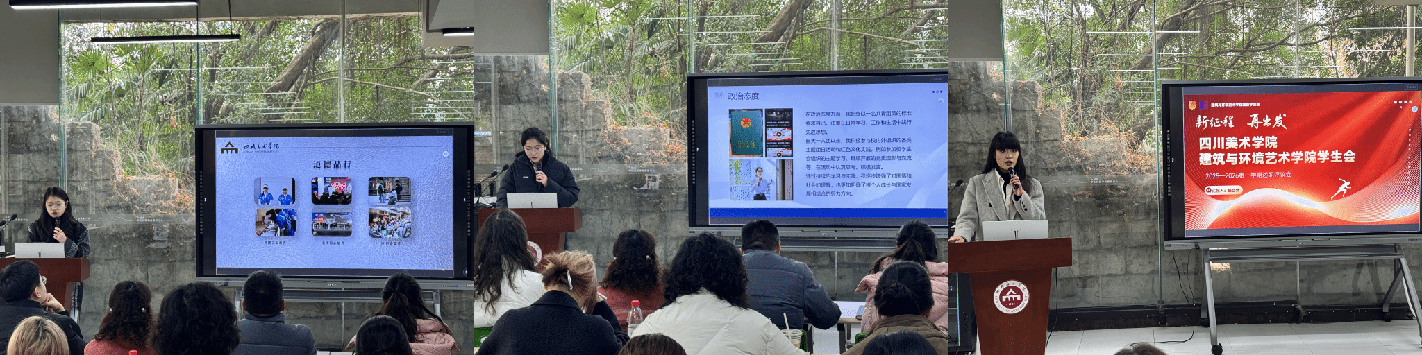 1月7日,2025-2026学年秋季学期学生会述职评议会在一站式学生社区事务服务中心招聘大厅举行。党委学生工作部、校团委负责人,校团委工作人员,二级学院分团委书记代表及学生代表参会。