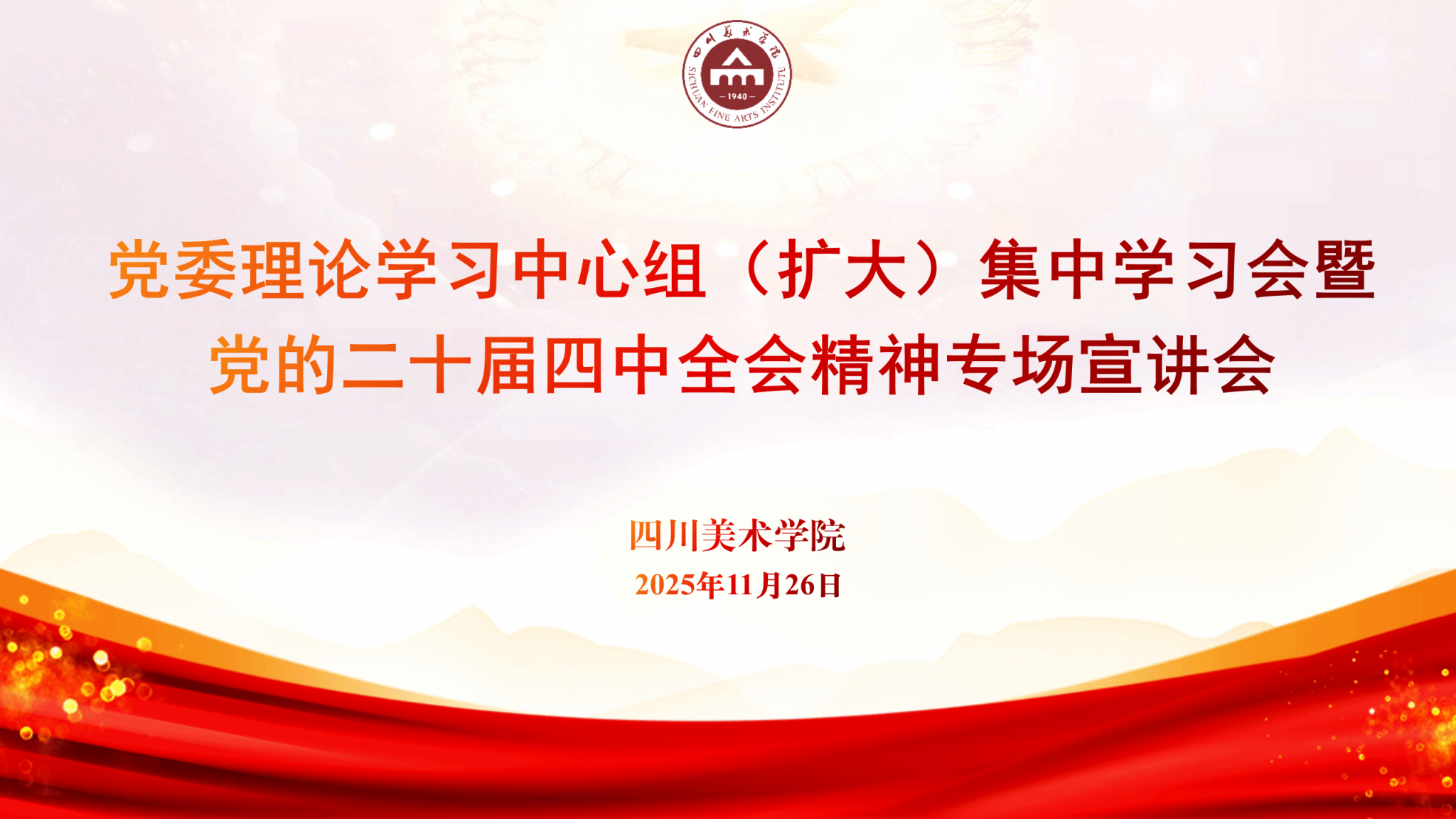 唐青阳书记的宣讲紧扣全会精神,结合学校发展实际,既是一次深入的理论辅导,也是一次有力的实践动员。立足学校宣传思想文化工作,我们要把学习宣传贯彻党的二十届四中全会精神作为当前和今后一个时期的重要政治任务,扎实做好全会精神学习教育、宣传宣讲,推动全会精神入脑入心、落地生根。紧密围绕学校中心工作和发展大局,精心策划系列主题宣传,弘扬主旋律,传播正能量,切实为学校事业高质量发展凝聚思想共识、营造良好氛围,为建设社会主义文化强国提供精神引领力、艺术支撑力。