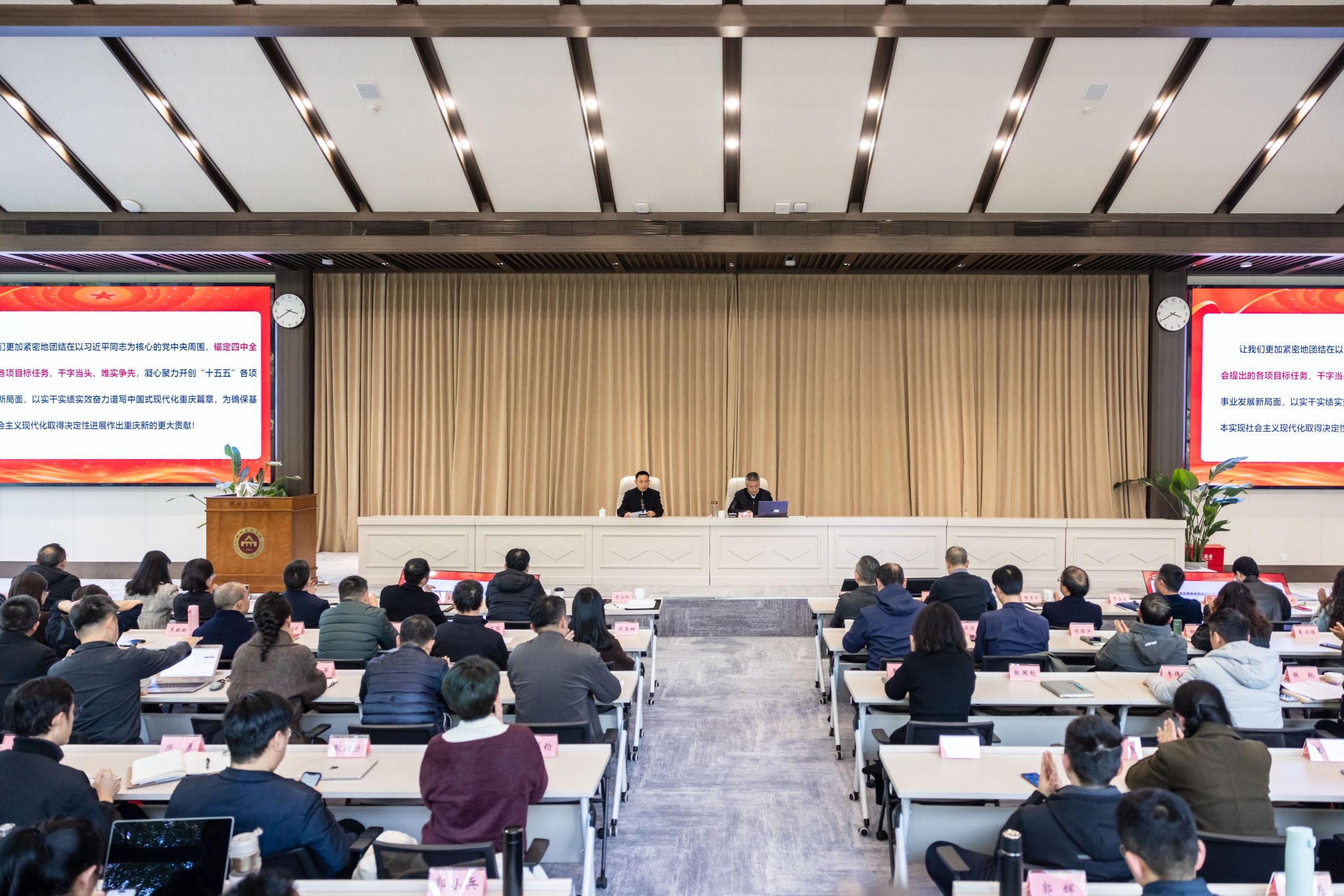 唐青阳强调,全校上下要按照党的二十届四中全会精神和市委六届八次全会部署,以奋力谱写中国式现代化重庆篇章为总纲领总遵循,深入领会推动重庆“十五五”发展的思路举措,干字当头、唯实争先,凝心聚力开创“十五五”各项事业发展新局面,以实干实绩实效奋力谱写中国式现代化重庆篇章。