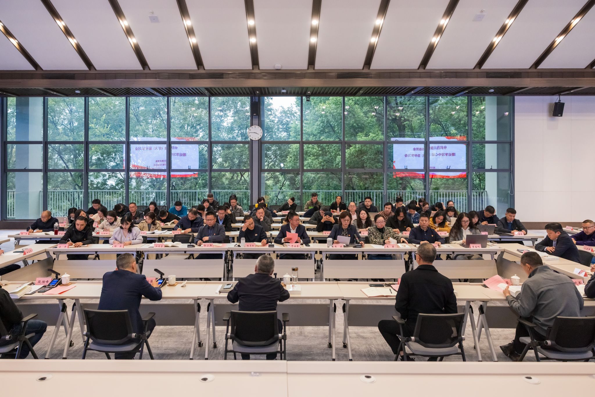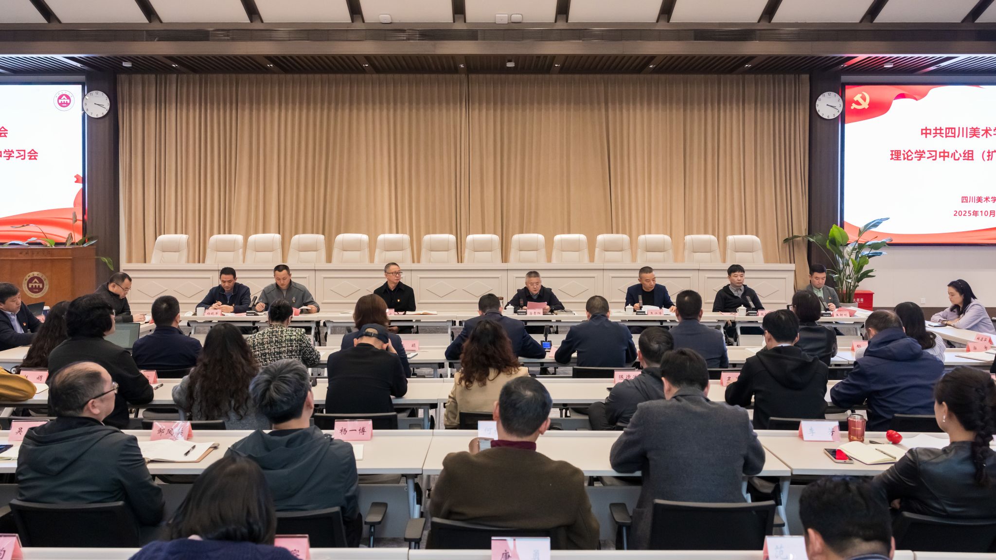 10月29日下午,学校在虎溪校区多功能3号会议厅举行党委理论学习中心组(扩大)集中学习会,深入学习《习近平谈治国理政》第五卷和党的二十届四中全会精神。校党委书记唐青阳主持学习会并讲话,在家校领导出席会议,处级干部参加。市委第十巡视组陈丁华、杨晓军到会指导。