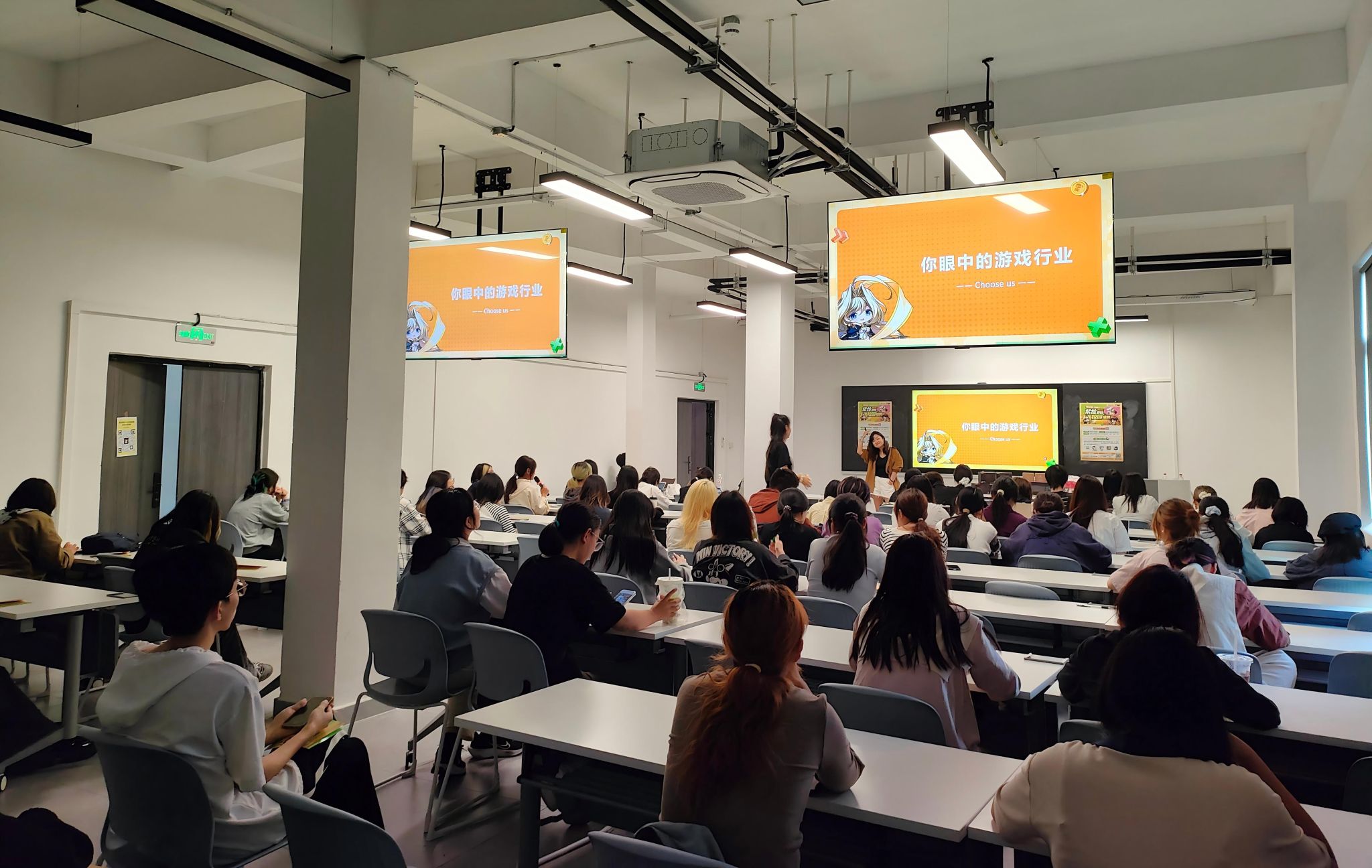 随后,企业方结合当前数字娱乐产业趋势,围绕游戏美术、角色设计、动画制作、项目管理等岗位需求,系统介绍了行业发展前景与职业成长路径,并分享了多个成功项目案例,激发了学生们浓厚兴趣。