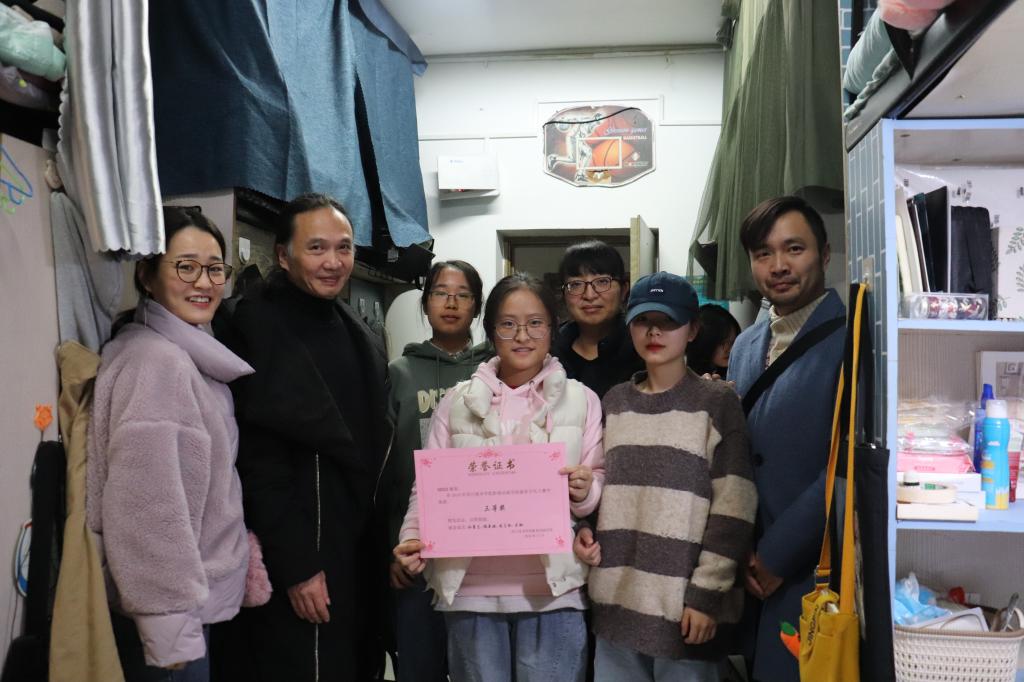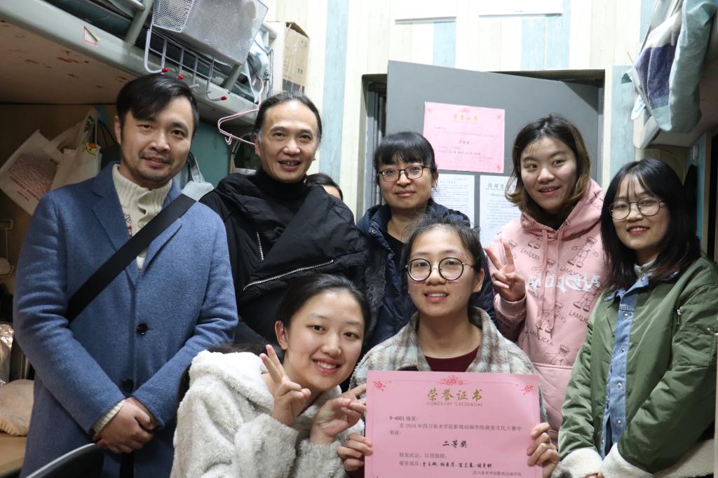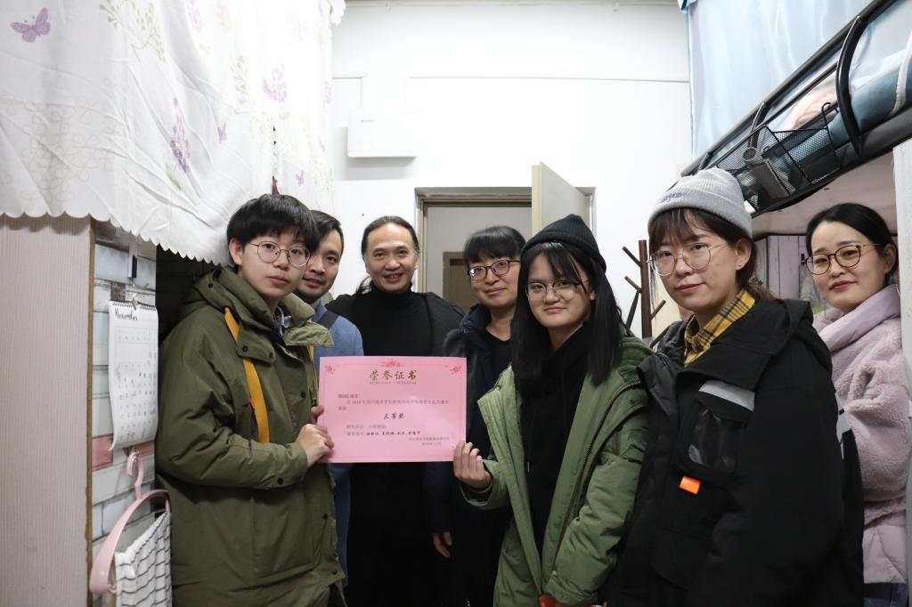 11月27日下午,影视动画学院院长周宗凯、党总支副书记吴杨、副院长徐静君,以及各年级辅导员和获奖寝室班主任到各获奖寝室进行了参观并为获奖寝室颁奖。获得一等奖的寝室是5号楼A区414;获得二等奖的寝室是5号楼B区415和9号楼4001;获得三等奖的寝室分别为5号楼B区322、5号楼B区323、5号楼B区324;获得最佳人气奖的是5号楼B区307;获得最佳创意奖的是5号楼B区417。学院领导与获奖寝室学生们亲切交谈,关心他们的学习、生活情况,提醒他们注意寝室安全,勉励他们再接再厉继续保持良好的生活学习状态,珍惜大学的宝贵时光,珍惜相聚于同一个宿舍的缘分,将川美当成一个大家庭,将寝室当成自己的小家,将室友当成自己的家人,团结友爱,和睦相处,生活上彼此关心,学习上共同进步,遇到烦恼、挫折、迷茫的时候,也不要忘记多向老师请教,最后祝愿大家能收获令自己满意的学习成果。