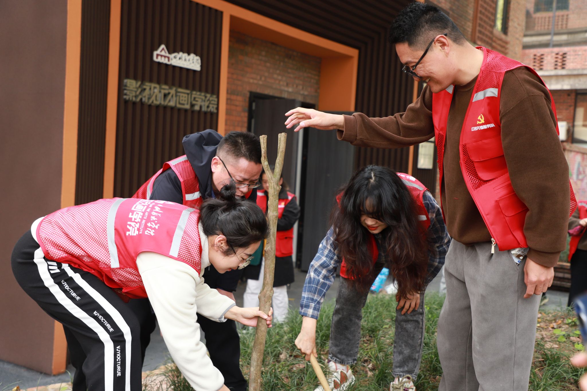 首先,开展了绿色志愿、美丽校园“3·12”植树活动,学院领导、师生一同种下树木,大家分工合作,有的挥锹铲土,有的扶苗培土,有的提桶浇水,用实际行动践行生态文明理念。