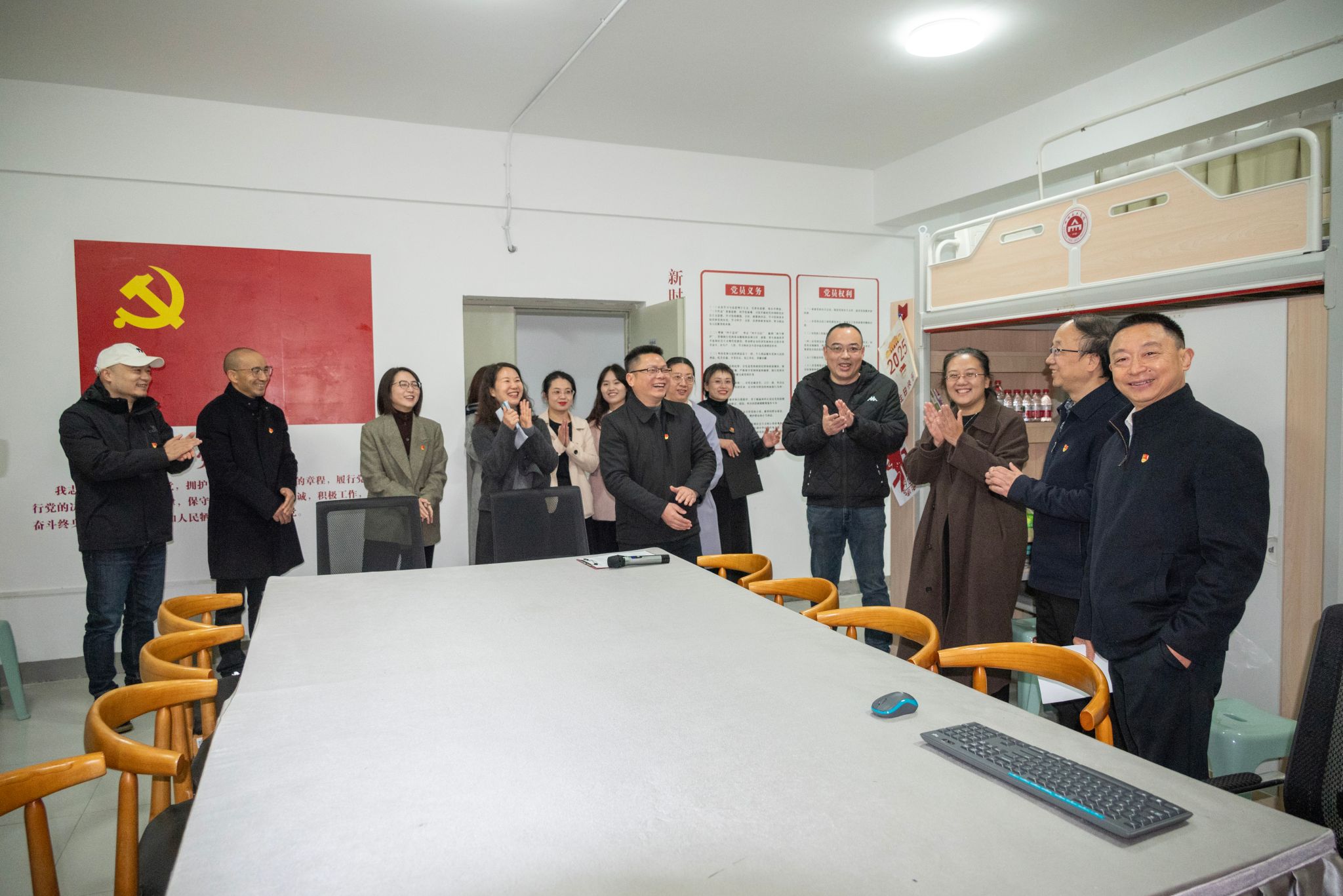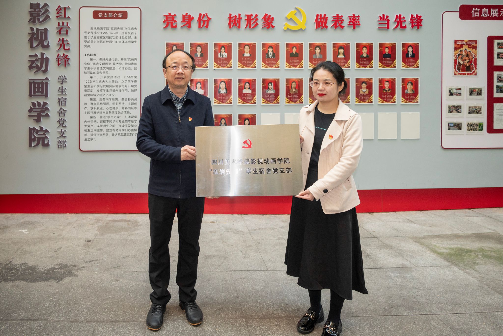 肖应红宣布党支部成立并讲话。他指出,“红岩先锋”学生宿舍功能型党支部的成立,是学校深入推进党建与思想政治工作深度融合、推动党建工作向生活社区延伸,打通思想政治教育“最后一公里”的重要举措,也是加强新时代高校基层党组织建设的有益探索。就加强党支部建设,他提出四点希望:一是坚持政治方向不动摇,始终把坚定理想信念作为首要任务;二是坚持服务导向不偏离,聚焦同学们的思想困惑和发展需求做好服务,成为学生信得过、靠得住、离不开的“贴心人”;三是坚持品牌打造不懈怠,结合影视动画学院的专业优势,努力培育一批有影响力的党建品牌项目,形成示范效应;四是坚持“党员亮身份做表率”不松劲,在维护宿舍环境、弘扬社会主义核心价值观等方面发挥先锋模范作用,做到“一名党员就是一面旗帜”。