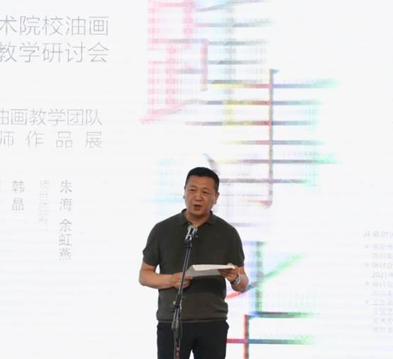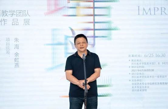 造型艺术学院副院长、油画系主任王朝刚先生主持开幕式并致辞:“ 美术学油画专业方向在中国高等艺术院校中富有深厚的历史积淀和全国瞩目的创作高度。在第四轮和第五轮学科评估的基础上,研究生教育不断拓展的新历史环节,其研究生导师团队建设至关重要!本次展览立足于展示目前 油画专业的研究生导师团队的部分创作作品,以点带面,展示川美油画团队的艺术创作和学术研究,也希望借助各种力量和平台构建合理的学科建设梯队,推动学科发展!并借此机会,举办全国美术专业院校油画研究创作教学研讨会,讨论新时代油画研究生培养中创作与研究的关系以及在新文科、新艺科背景下的油画研究生培养,也为我们即将筹备的“全国油画创作及教学研讨会”的召开打下基础,拟定议题,制定方案!本次展览同时在 CAEA美术馆展示了部分优秀研究生的作品,与美术馆的油画教学团队研究生导师作品展配套,呈现一个完整的学术展览效果。”