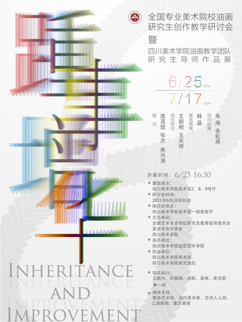 2021年6月25日16:30,由全国艺术专业学位研究生教育指导委员会美术专业分委会、 主办的“全国专业美术院校油画研究生创作教学研讨会暨踵事增华—— 油画教学团队研究生导师作品展与研究生作品展”在 美术馆正式开幕。