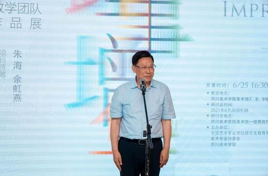 西安美术学院研究生处处长,油画家钟国昌先生代表西安美术学院致辞:“在贯彻落实研究生教育大会精神和建党100周年之际,召集我们全国艺术院校、美术学院同仁云集川美,共同探讨、研究全国美术学院、艺术院校研究生发展整体情况、师资队伍建设、研究生质量保障体系,找差距、找不足,共商建设思路,对美术教育、美育工程意义重大。”