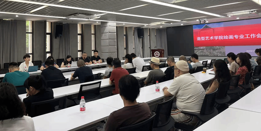造型艺术学院于7月14日上午在行政楼五会议室召开绘画专业工作会。学院领导班子、绘画专业全体教师、各管理办公室人员参会。会议由韦芳书记主持,重点围绕水彩方向教师团队融入、下半年重点工作通报以及2025级绘画专业人才培养方案研讨三个主题展开。