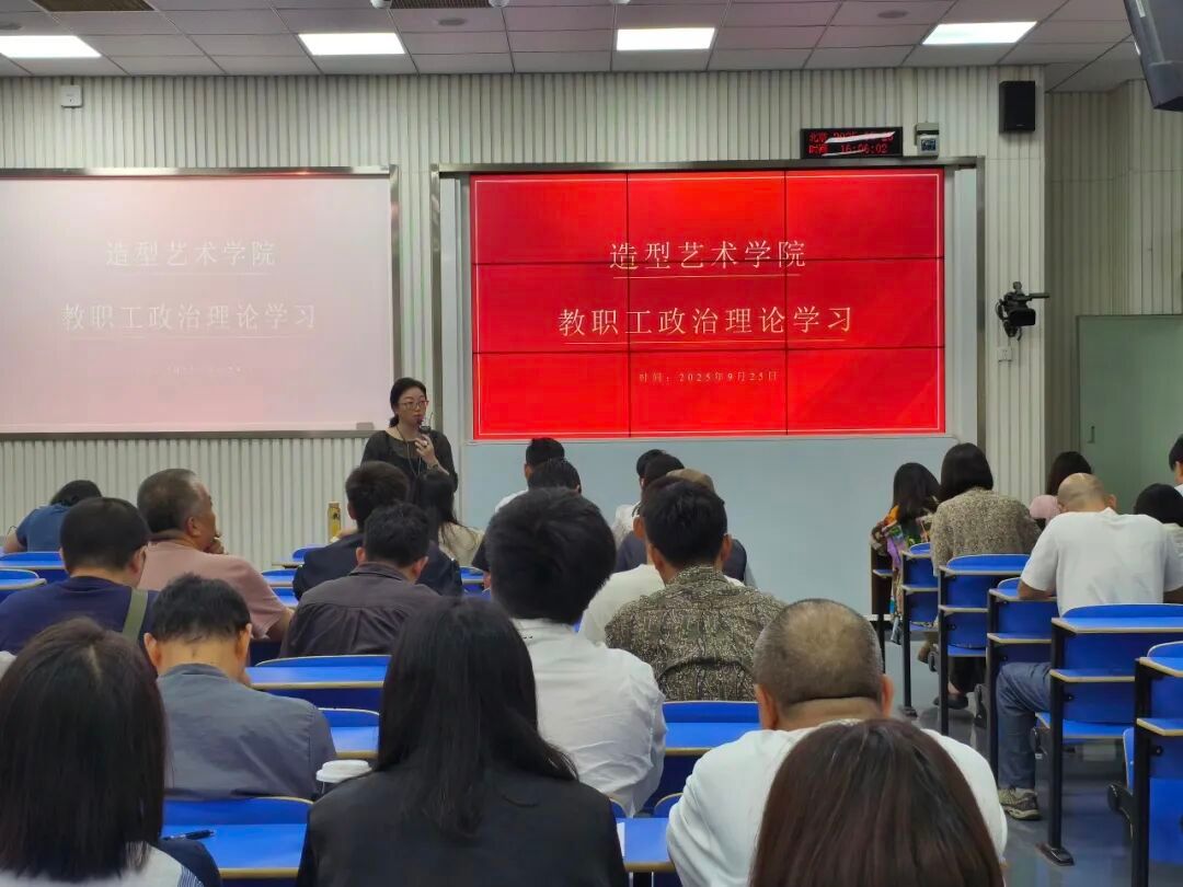 为强化教职工理论武装、明确工作重点方向,9月25日,造型艺术学院召开政治理论学习会,全体教职工参会,会议由学院党委书记韦芳主持。