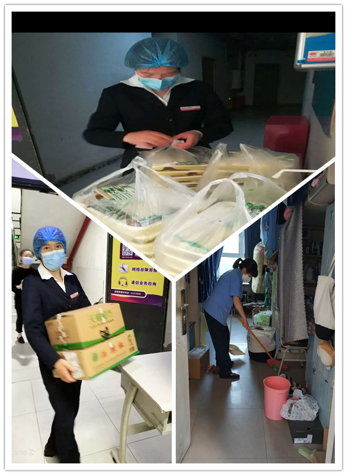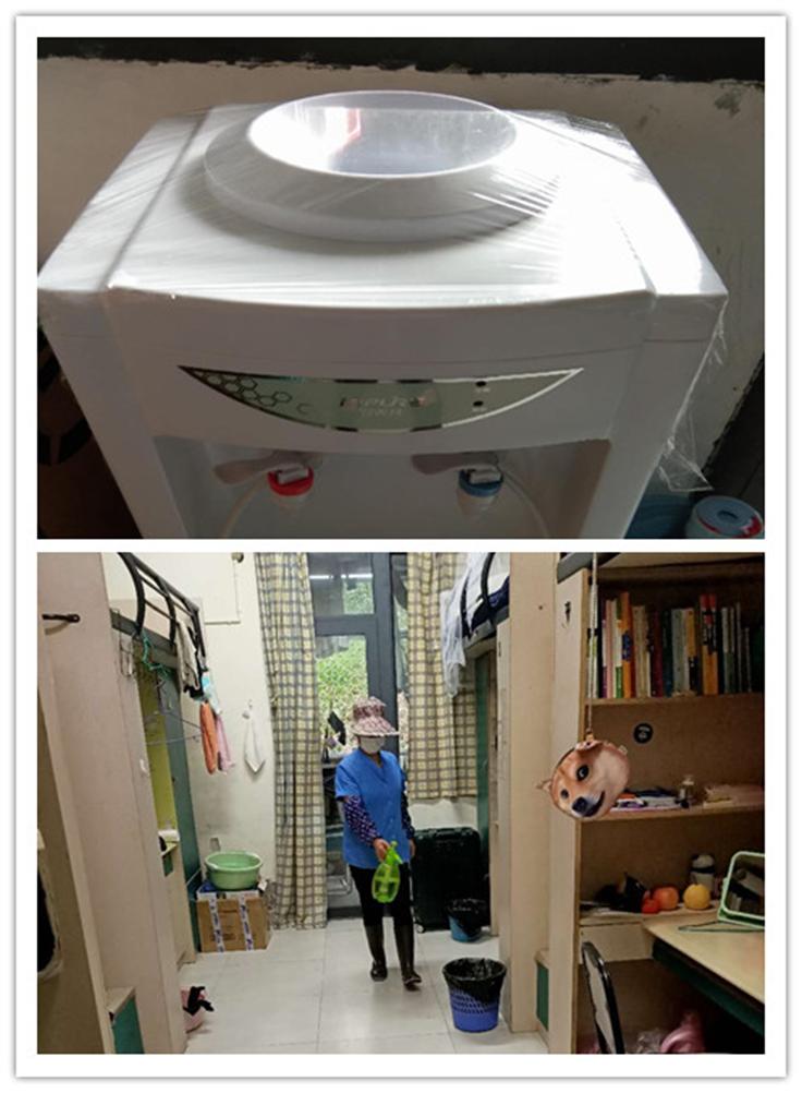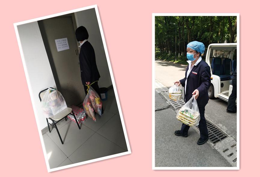 物业公司彻底打扫隔离房清洁卫生,分配生活物资,帮学生取快递、送三餐、递外卖,确保返校学生14天健康管理期间的生活无忧。