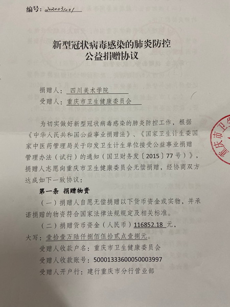 3月17日,重庆市卫生健康委员会给学校发来感谢信,高度赞扬了学校的捐款行为,并向学校致以诚挚谢意。