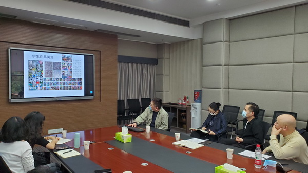 各二级学院汇报了本单位毕业教学进展情况,毕业作品中发现的亮点和特色,与会人员共同分析作品现状,研究展览思路,并根据线上展览的要求确定了下一步毕业教学工作重点,包括策划特色主题,收集过程资料,调整评审程序标准,做好宣传推广等。