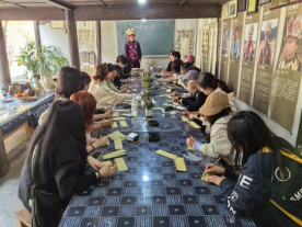 除了理论讲解,活动还安排了实践体验环节。师生们亲手体验了纳西八宝拓印和东巴造纸等传统手工艺。在造纸环节,大家亲身体验了从纸浆到成纸的全过程,对古代造纸术有了更直观的认识。在拓印过程中,则感受到了传统技艺的精湛与魅力。