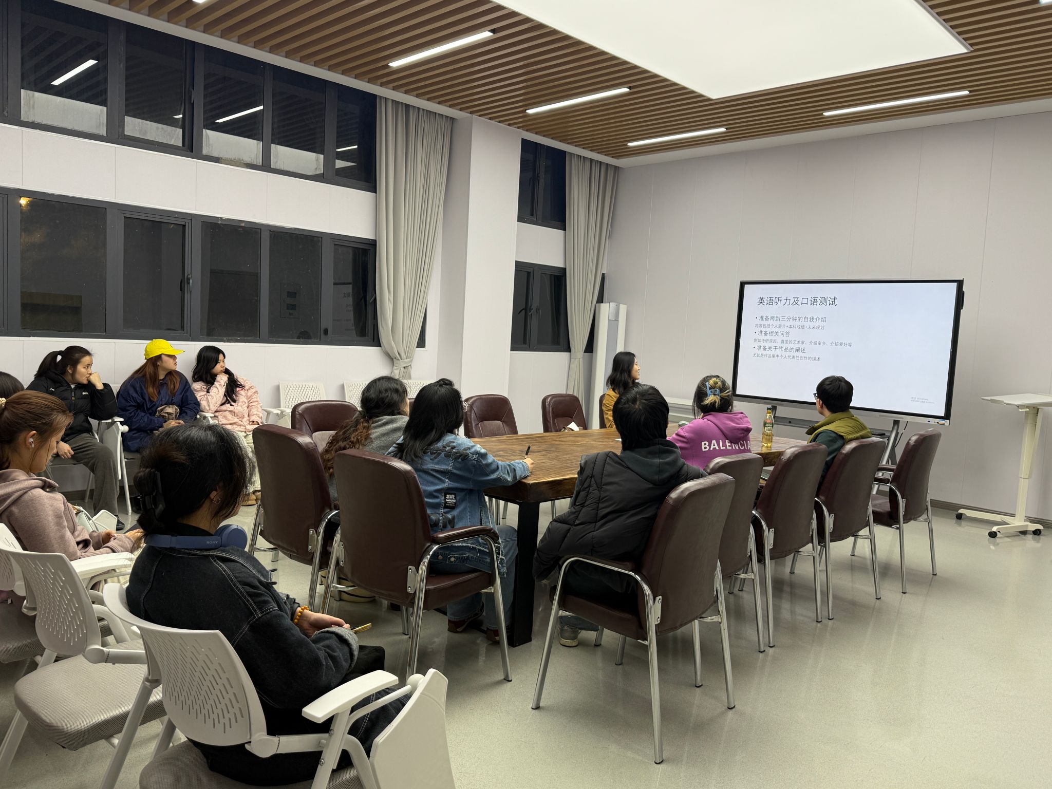 不同科目的考试内容、流程安排、重点难点入手,讲解了复试备考的时间规划、复习方法,以及面试中的礼仪规范、答题技巧等。其中,裴育娇同学还特意带来了自己的复试作品集,结合创作思路、排版逻辑、展示技巧等内容面对面讲解,让大家直观掌握作品集准备关键要点。